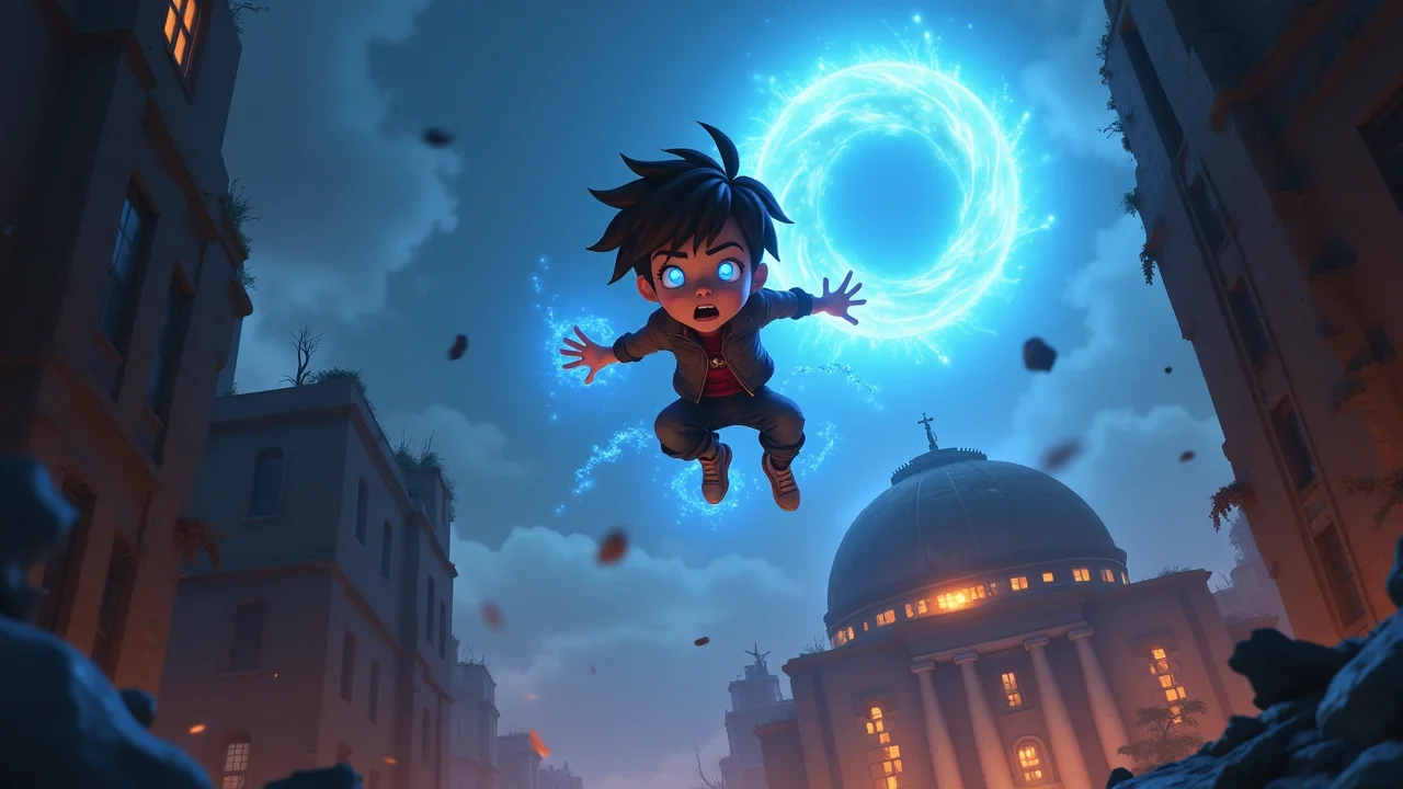 Путь к пятну был непростым. Город лежал в руинах, улицы были завалены обломками зданий и искорёженными машинами. Макс использовал свои новые способности, чтобы перепрыгивать через препятствия, уворачиваться от падающих балок и даже создавать небольшие энергетические платформы, чтобы добраться до высоких мест. Он чувствовал, как его силы растут и становятся более послушными, хотя он всё ещё не до конца понимал их природу. Каждый прыжок, каждый энергетический импульс давался ему легче, чем раньше.