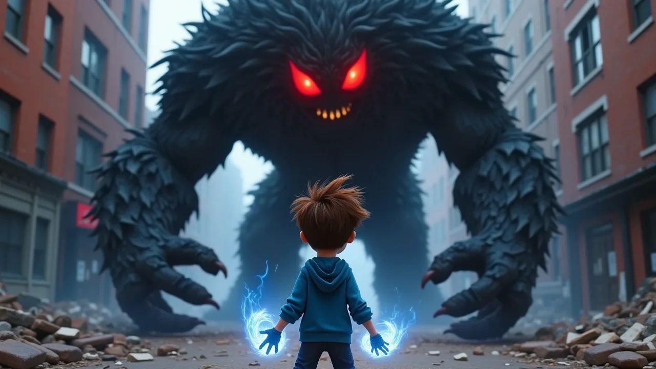 Макс, сжимая кулаки, почувствовал прилив энергии. Его руки засветились мягким голубым светом, и он, не раздумывая, выбежал на улицу. Прямо перед ним возвышался первый монстр – огромное, бесформенное существо с горящими красными глазами и острыми, как бритва, когтями. Оно крушило всё на своём пути, и Макс понял, что медлить нельзя.