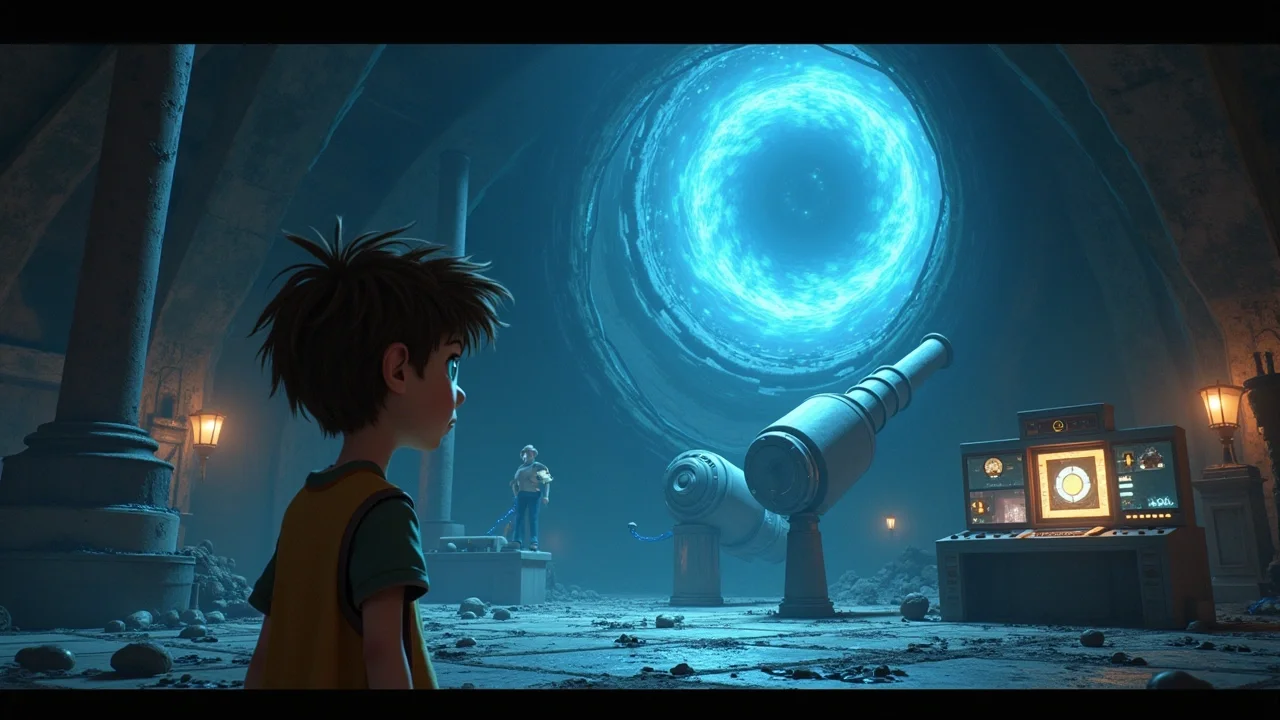 Рядом с телескопом Макс увидел голографическую проекцию. Это был сам профессор Эдисон, его изображение мерцало и дрожало. Профессор выглядел измождённым и напуганным. «Я… я совершил ужасную ошибку», — произнёс голографический образ, его голос был полон отчаяния. — «Я открыл портал в измерение теней, думая, что смогу контролировать его. Но оттуда хлынули существа, которые питаются энергией нашего мира. Я пытался закрыть его, но… но у меня не хватило сил. Портал слишком нестабилен, и он поглощает всё вокруг. Если его не закрыть, наш мир будет уничтожен».