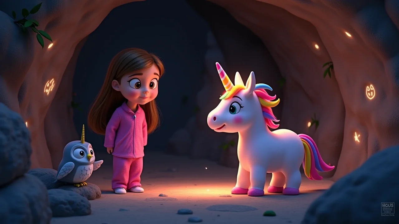 Они вошли в пещеру. Внутри было действительно очень темно, но рог Радуги светился ярче обычного, освещая им путь. Колокольчик совушки звенел, отгоняя тени и наполняя пещеру приятными звуками. Вероника крепко держалась за гриву Радуги, чувствуя его тёплую шерсть. Она знала, что вместе они смогут преодолеть любые трудности. Что же ждёт их в глубине Пещеры Забытых Снов?