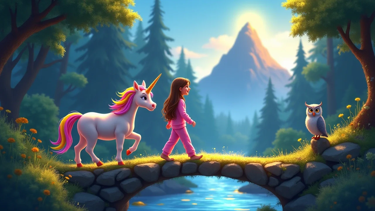 Вскоре они подошли к небольшой речке, которая тихо журчала, переливаясь лунным светом. На другом берегу виднелась высокая гора, вершина которой была окутана мягким, золотистым сиянием. «Там, на вершине, находится Золотая Звезда Снов, – сказала совушка. – Но чтобы перебраться через реку, нам нужно найти Волшебный Мост. Он появляется только для тех, кто готов поделиться чем-то очень ценным».