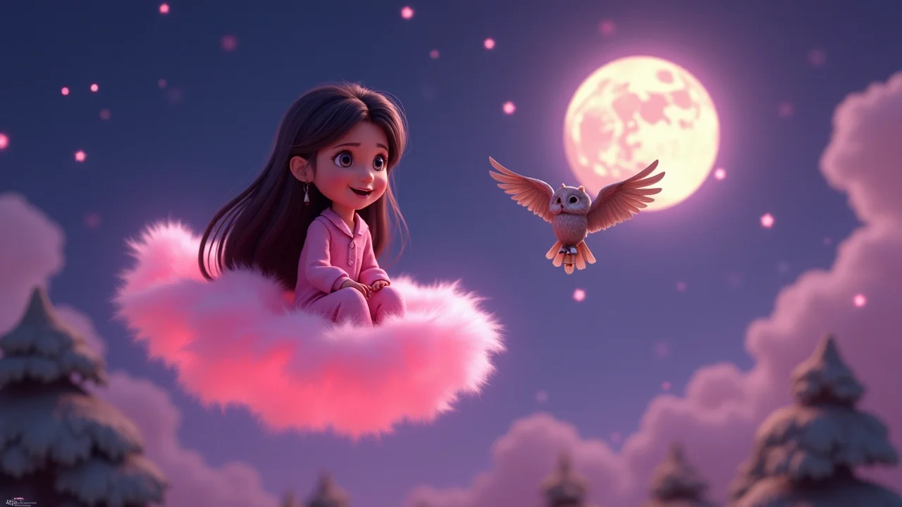 Облако поднималось всё выше и выше, пролетая над спящими домами и парками. Вероника видела, как внизу мерцают огоньки ночного города, похожие на рассыпанные бусинки. Рядом с ней, весело помахивая крыльями, летела совушка. Её серебряный колокольчик на шее звенел в такт ночному ветру, создавая прекрасную музыку.