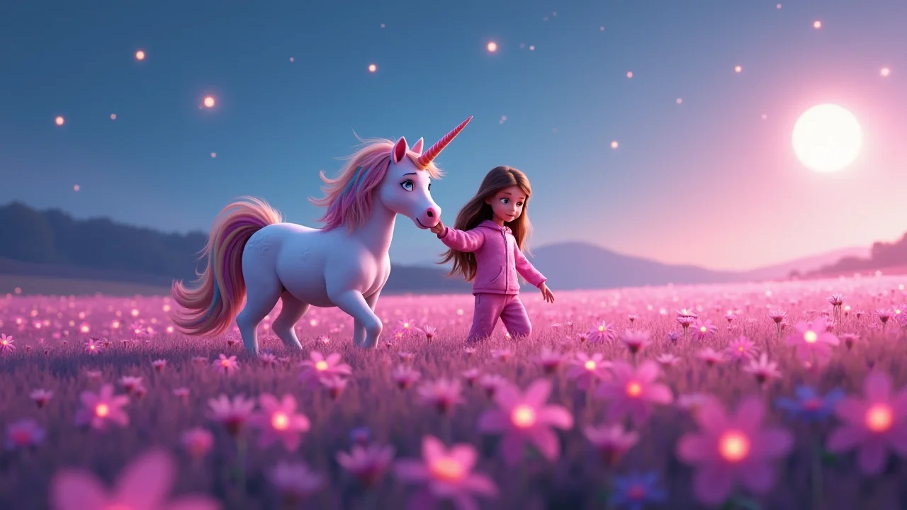 Однажды вечером, когда солнышко уже спряталось за горизонтом, а на небе зажглись первые звёздочки, маленькая Вероника, которой было целых шесть лет, готовилась ко сну. Её комната была самым уютным местом на свете: на стенах висели картинки с розовыми пони и блестящими единорогами, на кровати лежало мягкое одеяло с радужными гривами, а на полке стояла целая коллекция игрушечных лошадок всех цветов радуги. Вероника очень любила розовый цвет, и даже её пижама была нежно-розовой, с маленькими единорожками, которые словно танцевали на ткани.