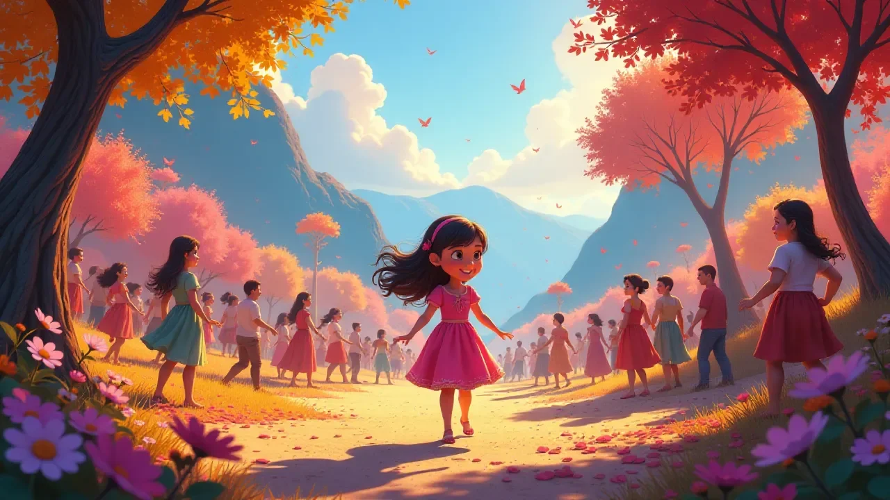 На празднике звучала музыка, все танцевали и смеялись. Аня была счастлива, что смогла помочь жителям этой удивительной страны. Она поняла, что даже маленькая девочка может сделать много хорошего, если у неё есть доброе сердце и волшебная кисточка.