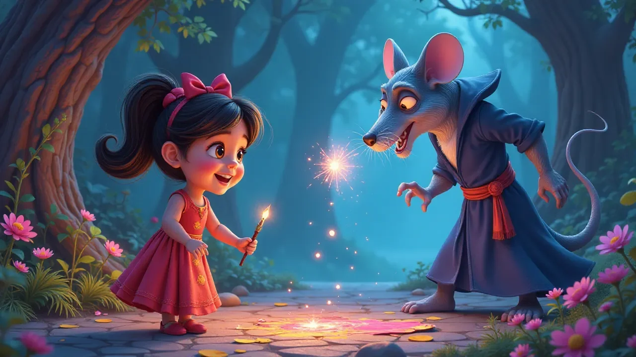 Вдруг, Серый Колдун споткнулся о свой серый плащ и упал. Из его рук выпал серый посох, который тут же раскололся на тысячу осколков. И в тот же миг Серый Колдун превратился в маленького серого мышонка и убежал в свою серую норку.