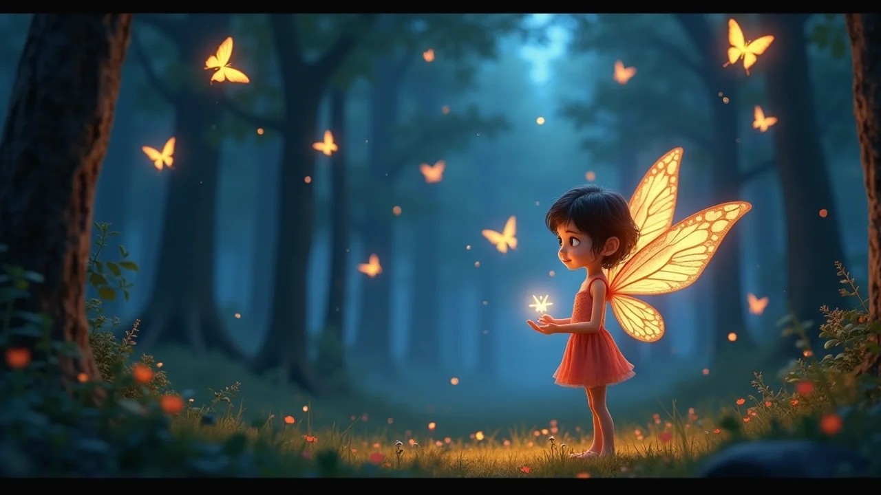 Iraya, con el corazón lleno de preocupación por el pequeño carbonero, sabía que su encanto natural y su amabilidad serían su mejor estrategia. Pensó en las Mariposas del Crepúsculo, seres delicados y brillantes que siempre le ofrecían susurros de sabiduría. Se sentó suavemente en la hierba suave que comenzaba a cubrirse de rocío, cerca de un parche de setas luminosas que brillaban como pequeñas joyas en la oscuridad. Con la voz más dulce y melodiosa, la misma voz con la que hablaba a las flores y a los arroyos, Iraya comenzó a cantar una suave y antigua melodía que su madre, una hada de las constelaciones, le había enseñado cuando era apenas un rayo de luna.