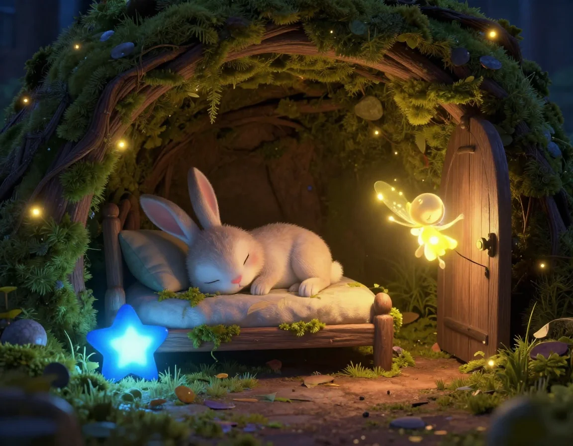 Біз бірге Аққұлақтың үйіне, жұмсақ мүк төселген ініне бардық. Мен оған жылы көрпесін жауып, жұлдызшасын қасына қойдым. Орман біртіндеп ұйқыға кетті. Жел де басылып, ағаштар баяу тербеліп, бесік жырын айтқандай болды. Мен де өз үйіме, ескі еменнің қуысына оралдым. Бүгін біз тағы бір жақсы іс жасадық, демек, түстеріміз де өте тәтті болады.