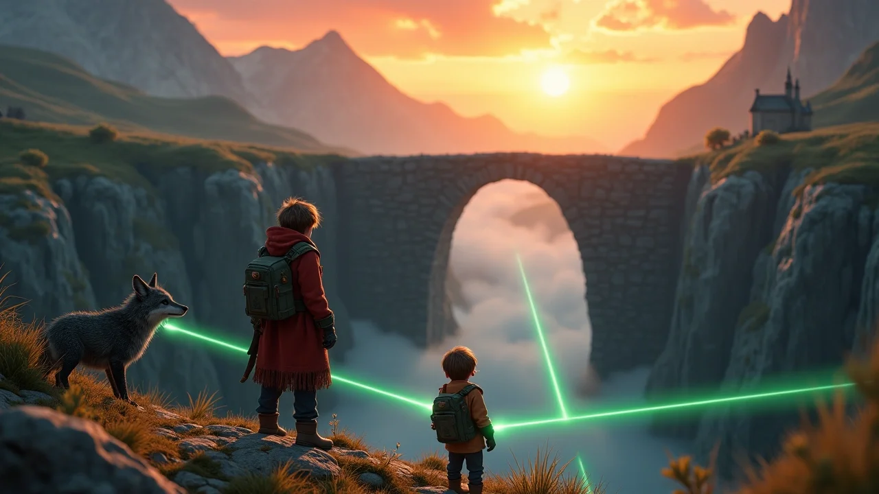 Путь был тернист, и вскоре мы оказались перед глубоким провалом, через который вёл лишь узкий, скользкий мост. Ветер свистел в ушах, и твои колени снова задрожали от высоты. Но ты вспомнил, как Артур доверился тебе, и решил показать пример храбрости.