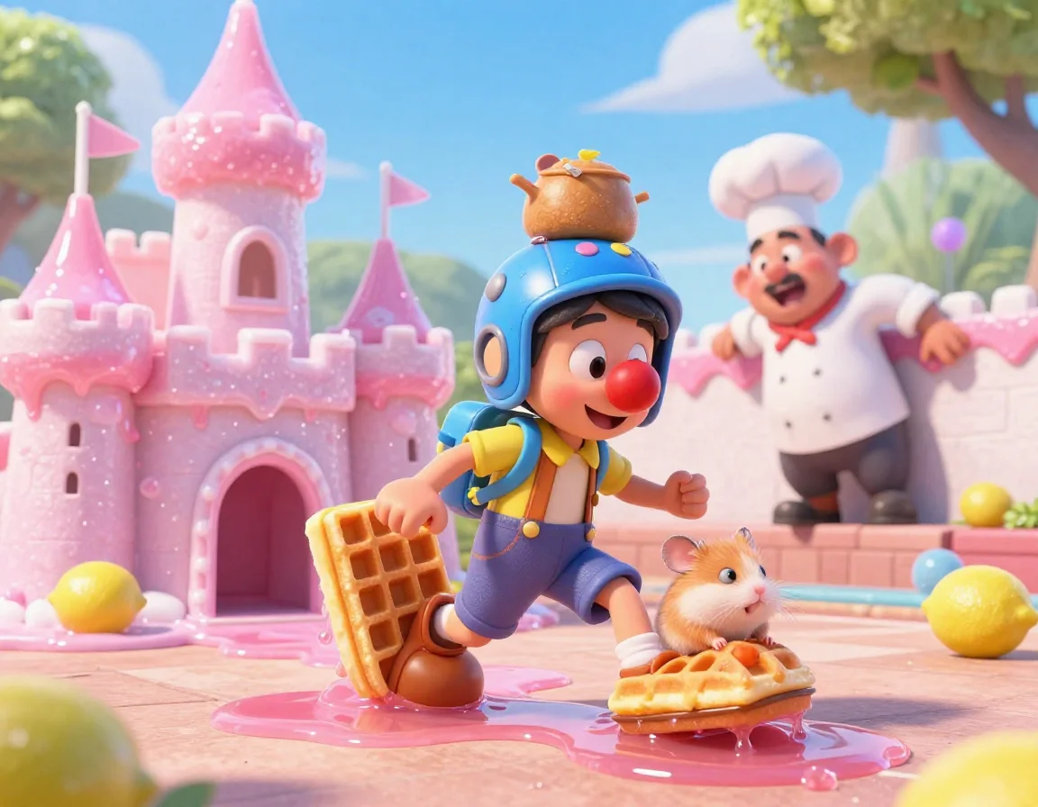 Я бросился на помощь, но мои кеды издали звук «Шлёп-чпок-тяг...» и остались стоять в луже лимонада, пока я по инерции пролетел вперёд в одних носках. Чих-Пых, чтобы не утонуть в сиропе, быстро соорудил из двух овсяных печений крошечные лыжи и начал лихо рассекать по розовым волнам, выкрикивая: «Йи-ха! Сахарный сёрфинг!»