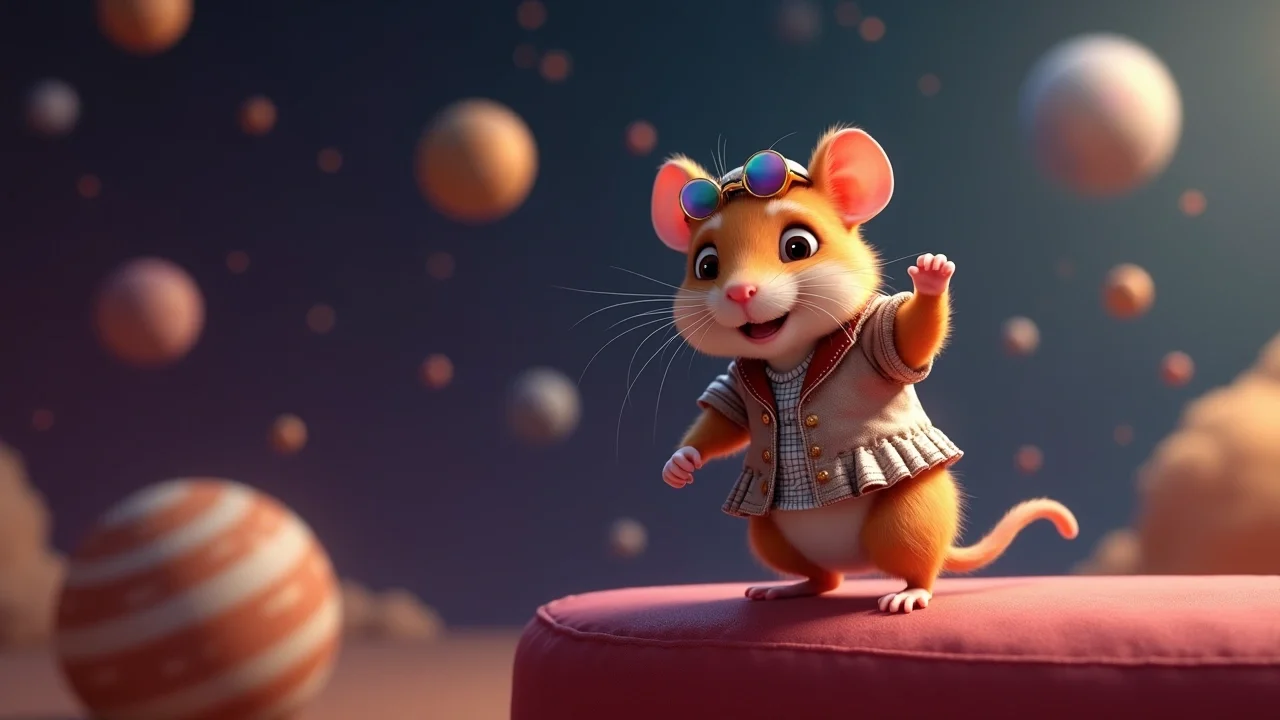 Комната вокруг начала меняться. Обои превратились в далёкие звёзды, а люстра стала похожа на гигантское сияющее солнце. Мы летели сквозь пояс астероидов, которые подозрительно напоминали папины старые тапочки. Один «астероид» пролетел совсем рядом — ВЖУХ! — и Чих-Пых едва успел поймать свою шляпу.