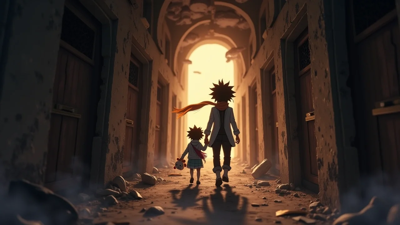 Они пробивались этаж за этажом. Оборо чувствовал, как с каждым шагом оковы Курогири осыпаются пеплом. Он смотрел на Изуку — маленького сына величайшего злодея, который теперь был их общей ответственностью. Он пообещал себе, что этот ребёнок никогда не узнает тьмы, в которой жил сам Оборо.