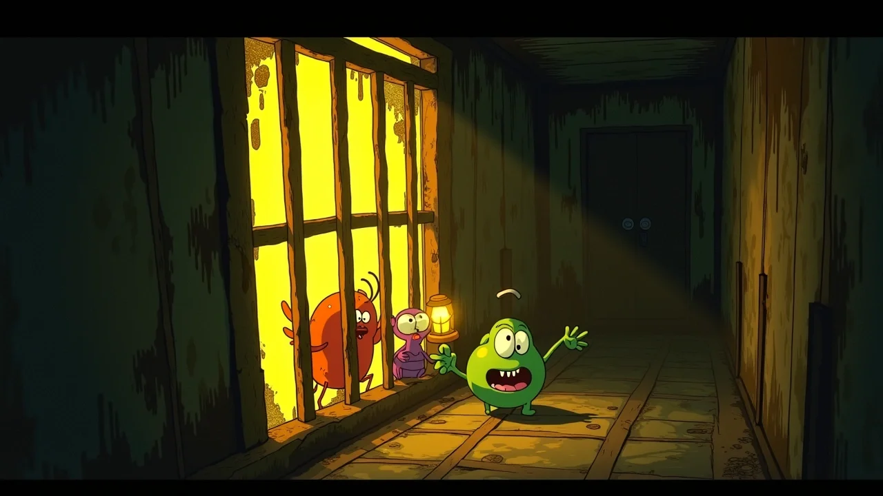 Лифт остановился с оглушительным лязгом. Двери медленно разошлись, и в кабину ворвался запах сырости и старых мультфильмов. Это был этаж, которого не было на картах. Стены здесь казались живыми — они медленно вздувались и опадали, словно кто-то невидимый дышал за слоем обоев. Повсюду были разбросаны пустые банки из-под краски и сломанные игрушки.