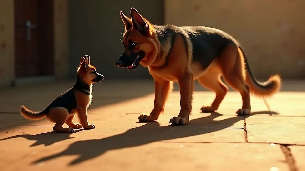 Прошли месяцы. «Кусок валенка» рос. Его шерсть стала жестче, а взгляд — холоднее. В девять месяцев он уже не был тем забавным щенком. И вот, во время прогулки, на Катрин и хозяйку натравили огромного немецкого дога. Хозяин дога смеялся, уверенный в превосходстве своего зверя.