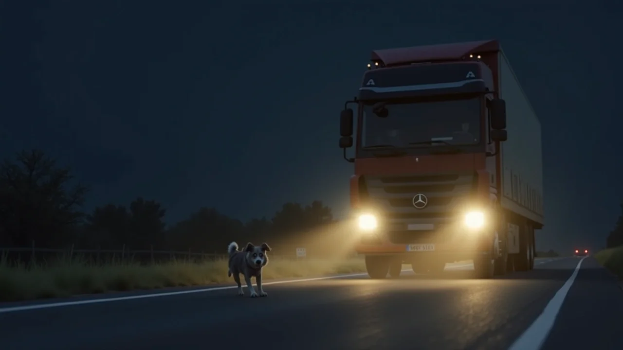 В этот момент из-за поворота вылетели ослепляющие огни огромного грузовика. Рёв мотора заглушил лай собак. Гин, припав на больную лапу, замер, ослеплённый светом фар. Смерть приближалась со скоростью сто километров в час.