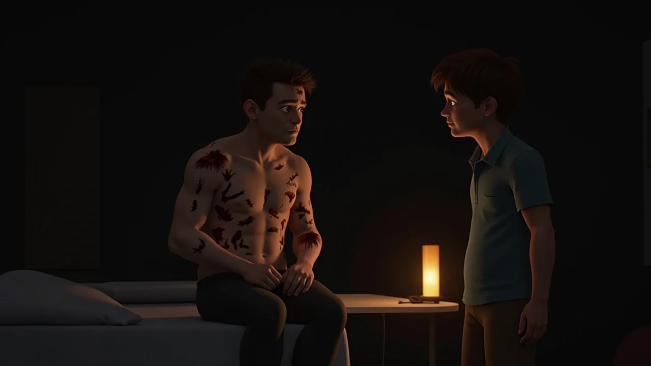 Прежде чем Эндрю успел возразить, Нил перекрестил руки и медленно стянул через голову свою поношенную толстовку. Под ней не было ничего, кроме кожи, которая больше напоминала карту разрушенного города. Глубокие рваные шрамы от ножей, круглые отметины от ожогов сигарет, длинные полосы, оставленные чем-то тяжёлым. На его теле почти не осталось живого места.