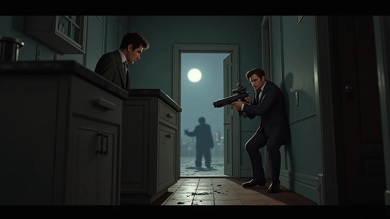 — Твоё прошлое пришло за тобой раньше, чем я ожидал, — прошептал Эндрю, доставая из-под столешницы пистолет и проверяя обойму. — Трое у ворот, двое обходят с тыла. Профессионалы.