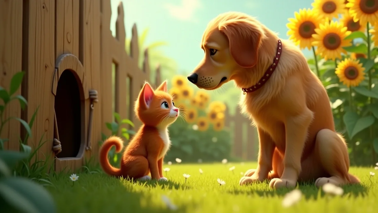 Прошло несколько недель, и Лучик превратился из пугливого комочка в смелого исследователя. Но в доме Алисы жил ещё один обитатель — огромный пёс по имени Барон. Барон был золотистым ретривером, и его лапа была размером почти с целого Лучика!