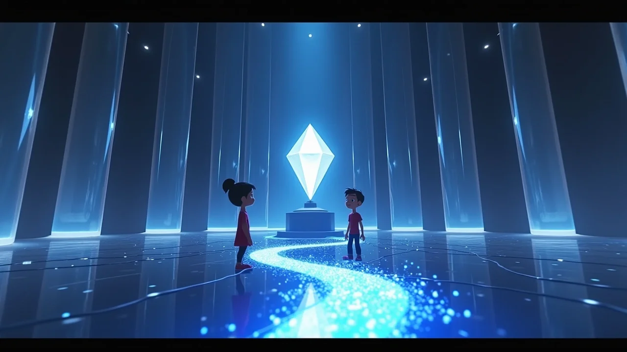 Как только я произнёс это слово, пол под нами превратился в прозрачный поток, похожий на жидкие часы. Мы начали медленно спускаться вниз, в самое сердце горы, где находился Зал Отражений. Там, в центре огромного зеркального лабиринта, покоился Кристалл. Но чтобы добраться до него, нужно было пройти через коридор, где время двигалось по-разному: в одном шаге — секунда, в другом — целый час.