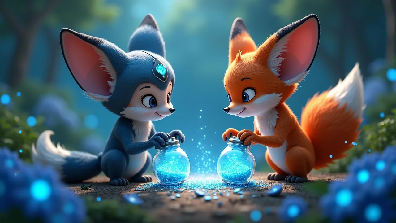 Мы решили не торопиться к выходу. Спарк аккуратно открыл свои встроенные отсеки, и мы начали собирать мерцающую пыльцу, которая осыпалась с лепестков. Она была тёплой на ощупь и пахла свежестью после грозы.