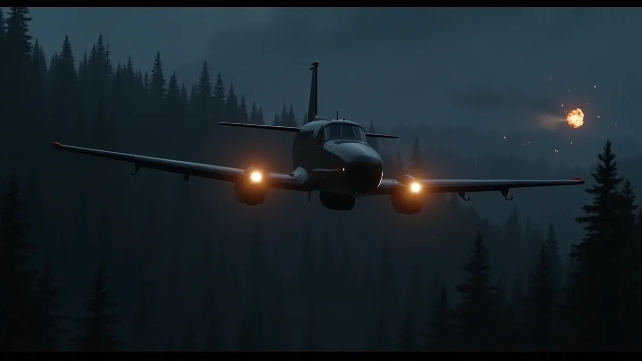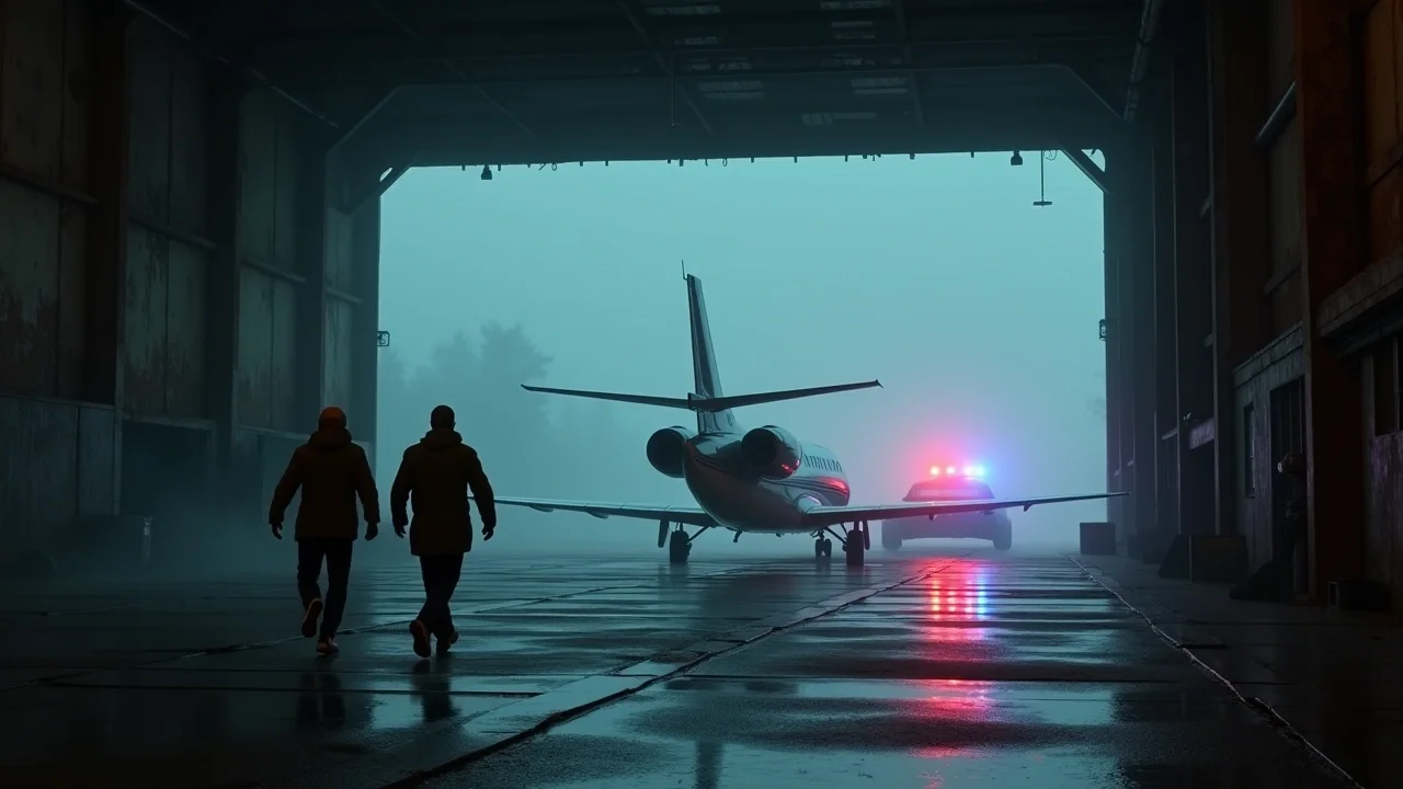 Двигатели чихнули, выбросив облако сизого дыма, а затем взревели, пробуждая тишину аэродрома. В этот момент из леса вылетели три чёрных джипа. Из окон высунулись люди с автоматами. Пули застучали по обшивке ангара, выбивая искры из бетона.