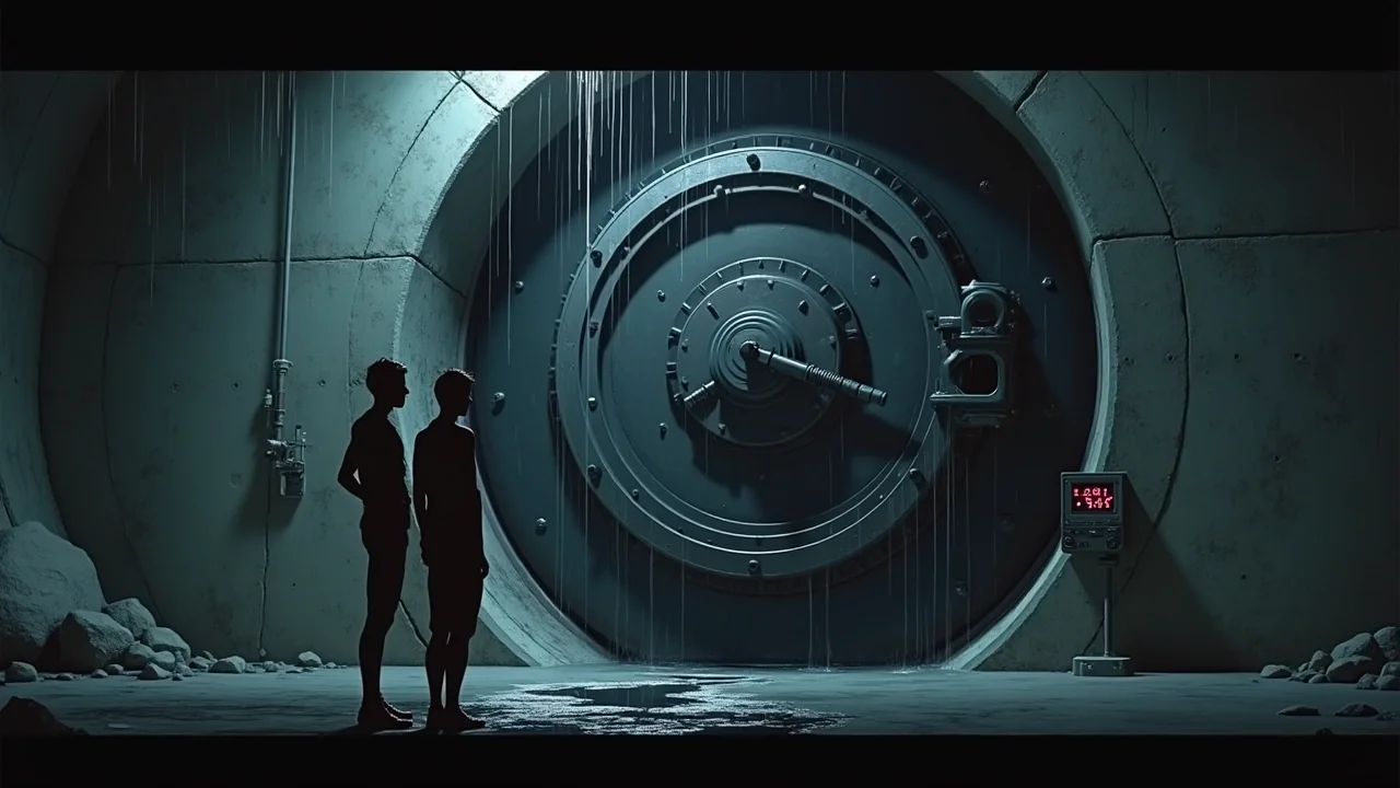 Эндрю протянул руку к кнопкам. Первая цифра отозвалась коротким писком. Вторая... Третья... Воздух в трубе, казалось, загустел от напряжения. Если они ошибутся, бетонный коридор превратится в их общую могилу. Когда Эндрю нажал последнюю клавишу, внутри затвора что-то тяжело ухнуло, и огромные стальные засовы начали медленно втягиваться в пазы.