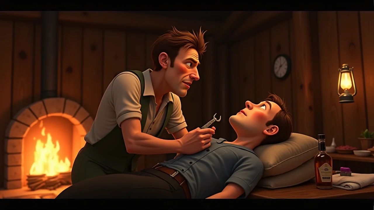 Разрезав пропитанную кровью одежду, Нил увидел рану. Пуля прошла навылет, но задела крупный сосуд, и кровотечение не останавливалось. Снаружи завывал ветер, бросая пригоршни снега в окно, а внутри маленькой комнаты тишину нарушал только треск дров в камине и тяжёлое дыхание раненого.