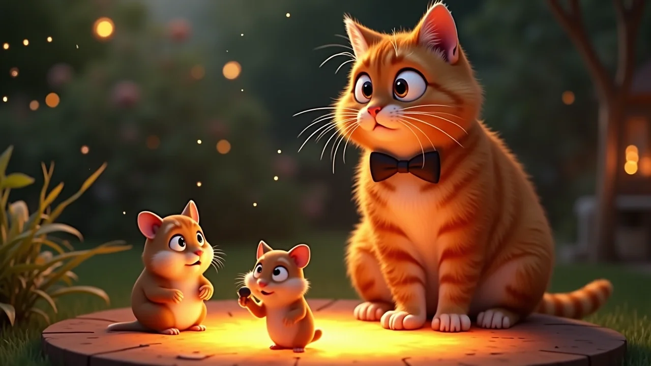 Барсик не выдержал, спрыгнул с лавки и... начал громко мурчать в такт музыке! «Мррр-пуррр-мррр!». Это мурчание было таким мощным, что улиток начало подбрасывать в воздух, как на батуте. Это был самый медленный и самый пушистый рейв в мире!