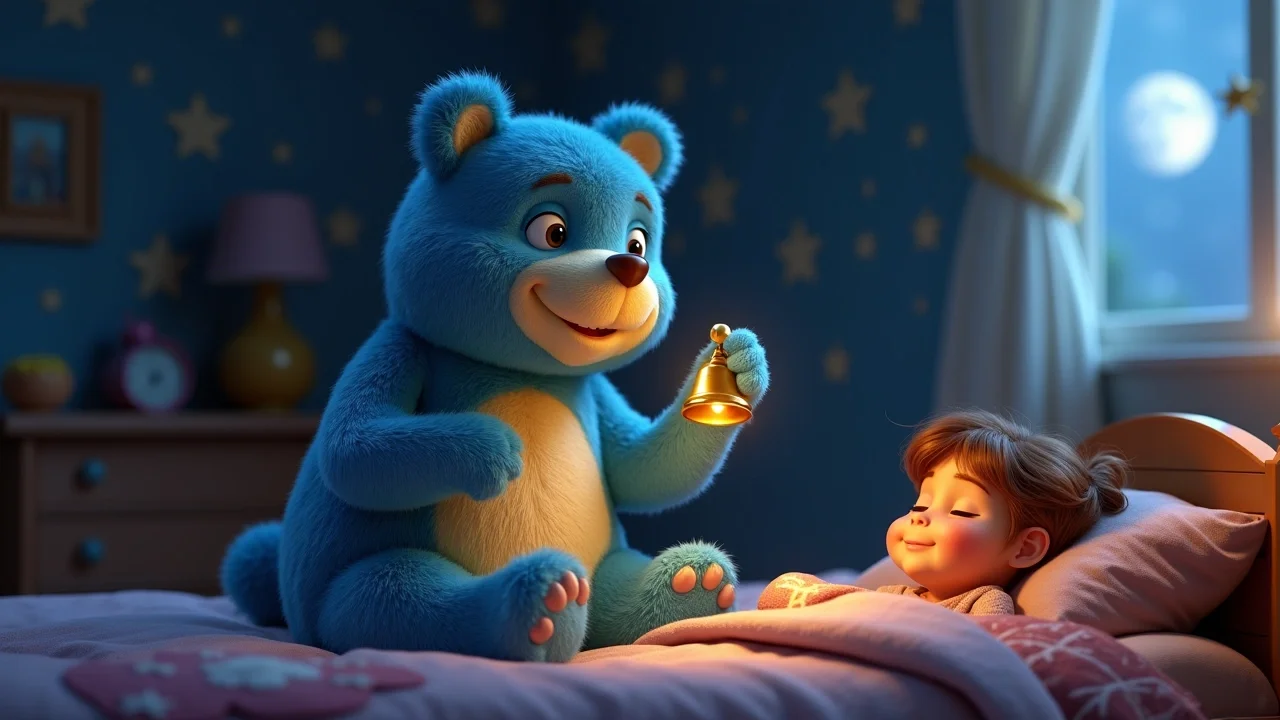 Мишка взял колокольчик, и по лесу разлился чудесный, нежный звон. Елизавета почувствовала, как её глазки начинают слипаться. Облако бережно подхватило девочку и понесло её обратно домой, прямо к её тёплой кроватке. Мишка помахал ей лапой, а звёзды засияли ещё ярче, охраняя её покой.
