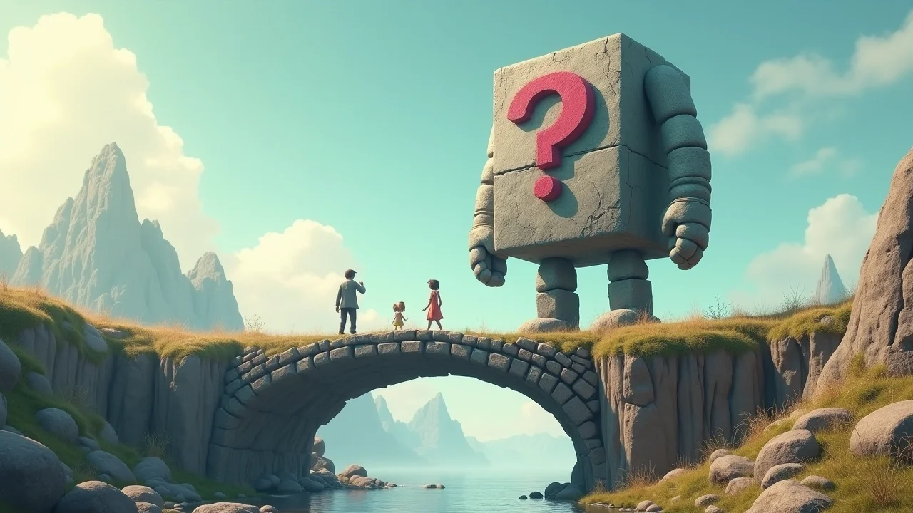Однако на середине моста буквы начали меняться местами, создавая сложные предложения с причастными оборотами. Путь преградил огромный каменный Страж Запятых, который требовал расставить знаки препинания в древнем заклинании, чтобы пропустить нас дальше.