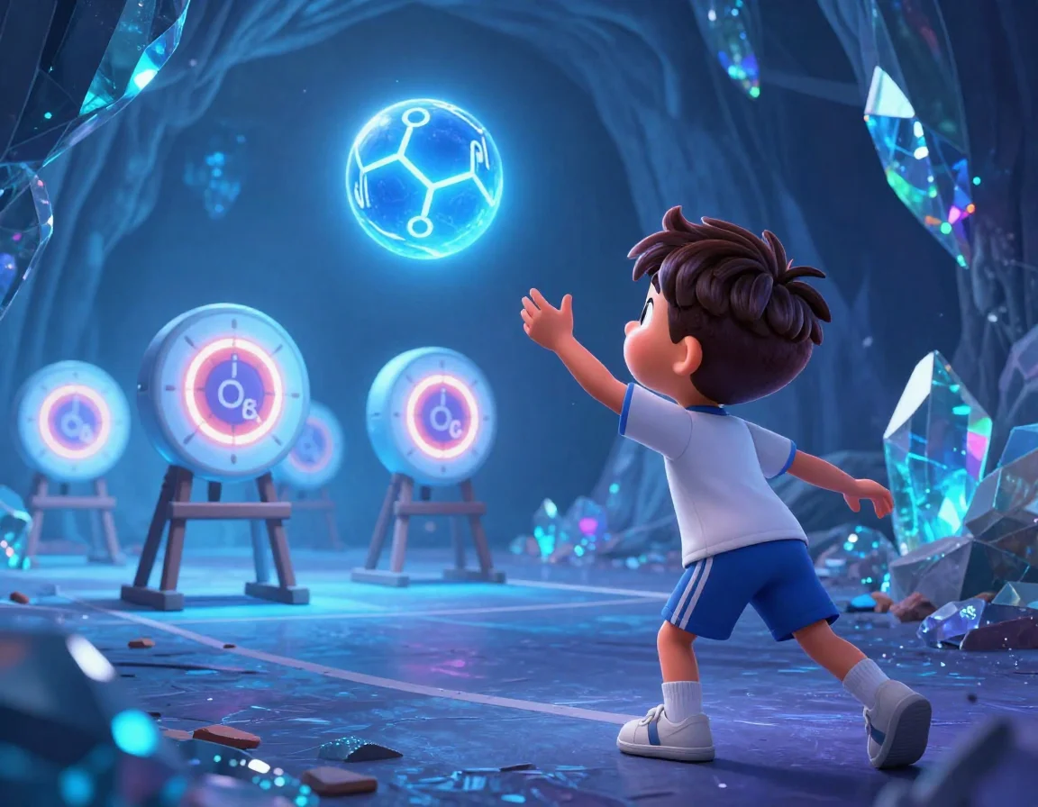 — Вот он! — крикнул я. — Но берегись, Олег! Кристалл защищён силовым полем. Чтобы его снять, тебе нужно объединить свою физическую силу и полученные знания. Видишь те мишени на стенах? На каждой из них — химический элемент или грамматический вопрос. Тебе нужно поразить их своим мячом в строго определённом порядке!