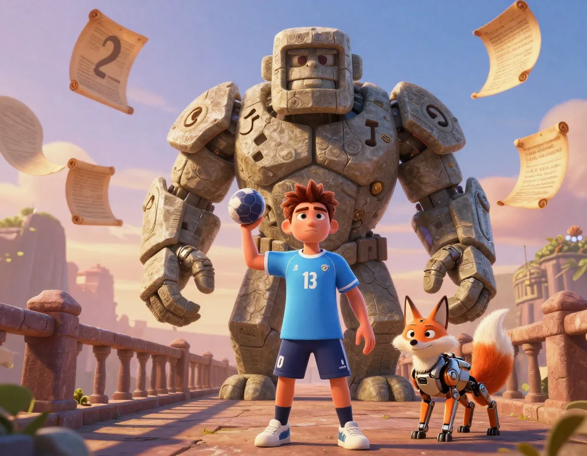 Страж Запятых преградил путь, скрестив свои каменные руки. Его голос звучал как грохот обвала: «Чтобы пройти дальше, ты должен доказать, что владеешь силой мысли так же искусно, как мячом! Расставь преграды в этом предложении, иначе оно потеряет смысл и обрушит мост!»
