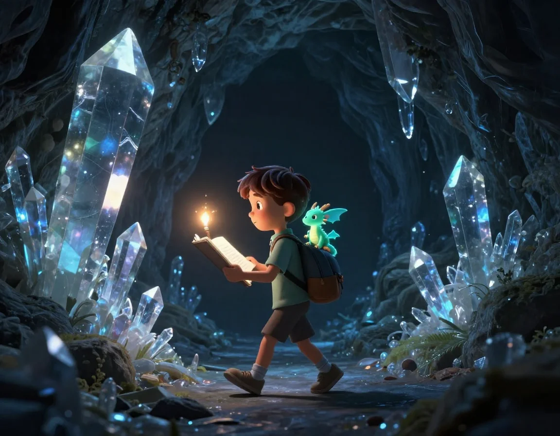 Вход в пещеру напоминал пасть огромного спящего зверя. Внутри было очень темно, и только хвостик Искорки освещал путь. Стены пещеры были покрыты странными кристаллами, которые повторяли каждое движение Артёма, но с задержкой, создавая сотни танцующих теней.