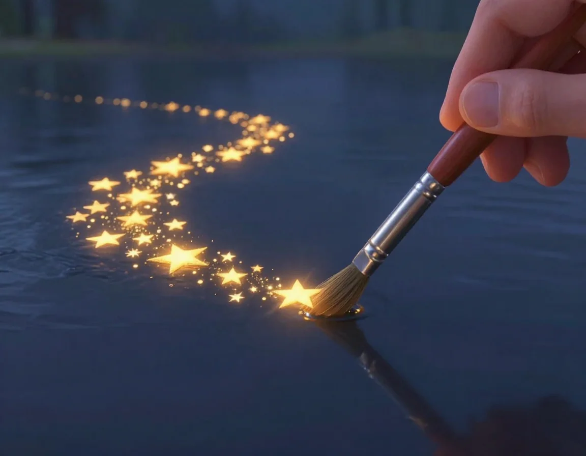 Артём задумался. Он вспомнил, как мама обнимает его перед сном, как пахнет свежий хлеб и как весело прыгать по лужам после тёплого летнего дождя. Он достал свои краски и начал рисовать прямо на поверхности воды. Он рисовал не просто картинку, а само ощущение тепла и смеха. Его кисть оставляла за собой шлейф из золотых искр.