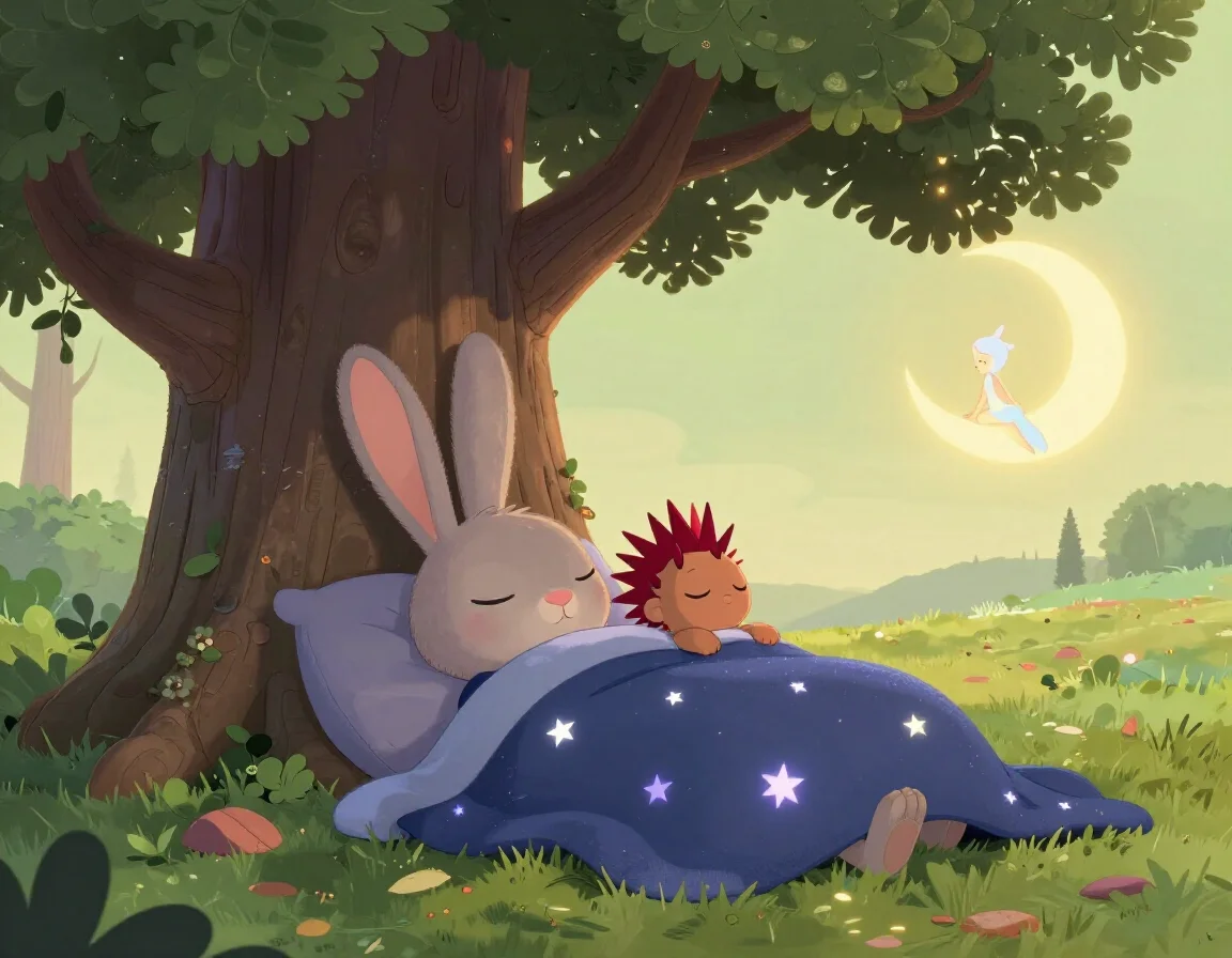 Солнышко уже давно спряталось, и на небо вышла полная Луна. Весь лес наполнился мягким сиянием. Пушок почувствовал, что его ушки больше не прижимаются к спине, а свободно слушают ночную тишину. Он понял важную вещь: даже самое громкое и непонятное можно приручить, если проявить немного терпения и доброты.