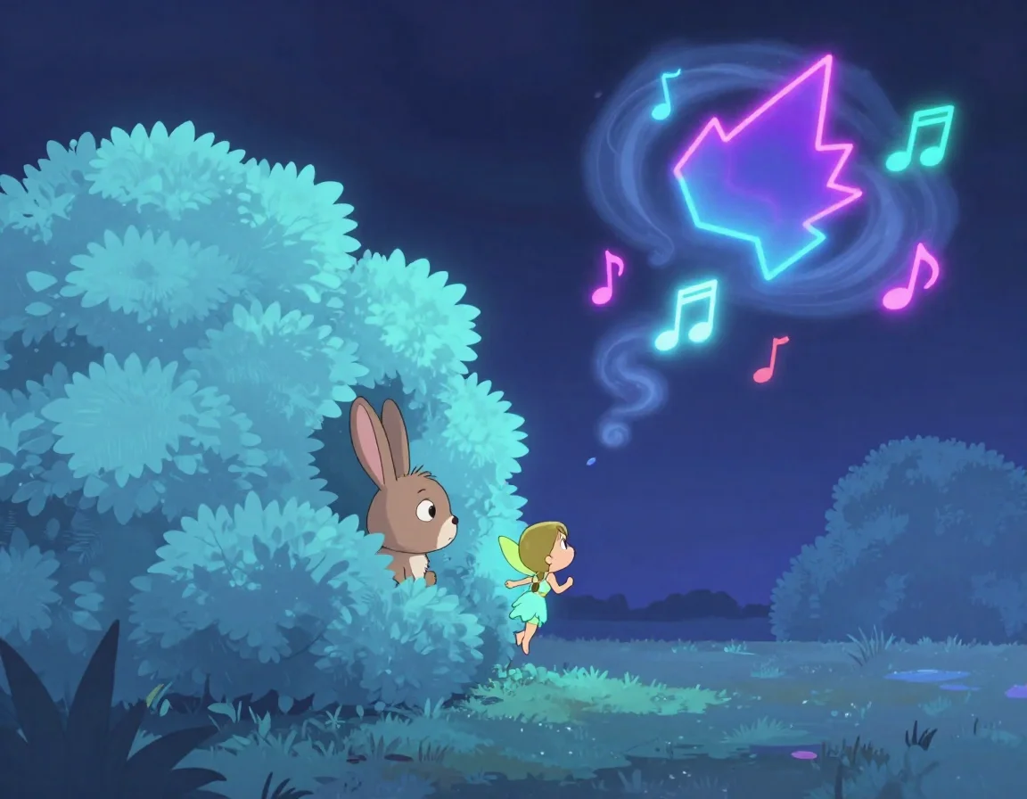В самом сердце Волшебного Леса, где на ветках старого дуба спят звёзды, жил-был маленький зайчонок по имени Пушок. У Пушка были самые мягкие лапки и очень чуткие, длинные ушки. Он любил слушать, как шелестит трава и как капает роса с лепестков колокольчиков.