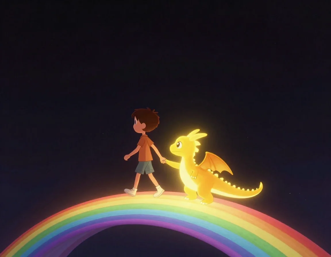 Debug посмотрел на свои маленькие лапки и загрустил: «Я такой маленький, я не могу построить мост...». Ты присел рядом с ним и обнял своего голографического друга. Ты почувствовал, как его пиксели теплеют. В этот момент в твоей голове родилась идея. Ты достал свои волшебные карандаши и начал рисовать прямо на пустой странице книги. Ты не рисовал мост из камня или дерева. Ты рисовал Мост Крепких Рукопожатий — конструкцию из переплетённых ярких лент, каждая из которых символизировала доброе слово или общий секрет.