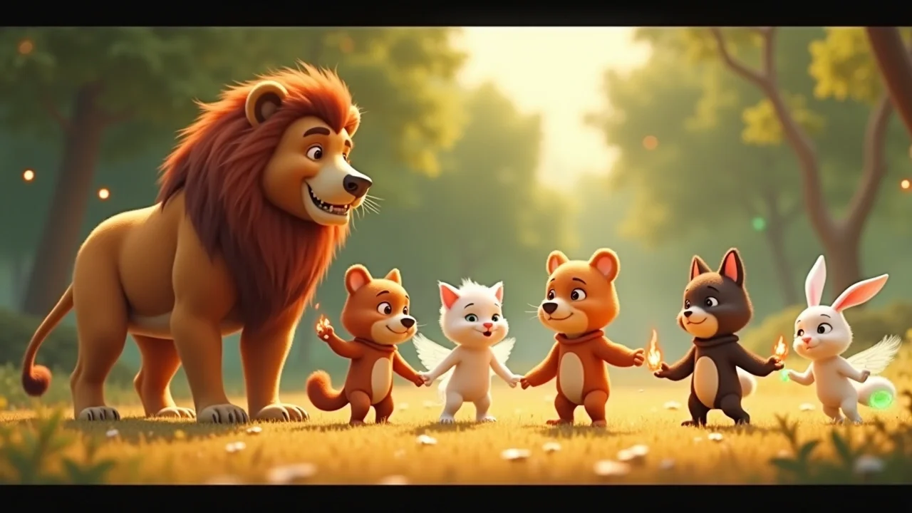 Луна, маленькая светлячок-фея, сидела на веточке старого дуба, а её волшебный фонарик мягко мерцал, освещая страницу древней книги сказок. Но сегодня, вместо привычных историй про добрых зверушек, из лесной чащи доносился неладный шум, что-то непривычное для мирной Энималградской долины.