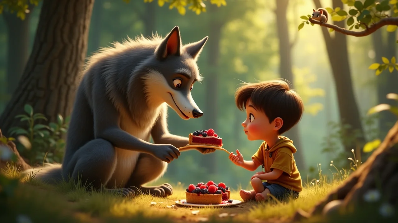 Сашка, не раздумывая, предложил свою помощь. «Я обязательно найду эту траву! А пока, вот, возьми». Он достал из своей котомки свежий, ароматный пирог, который испекла для него бабушка. Волк недоверчиво понюхал угощение, потом осторожно взял кусок и с жадностью принялся есть. В его глазах впервые за долгое время блеснул огонёк надежды и благодарности.