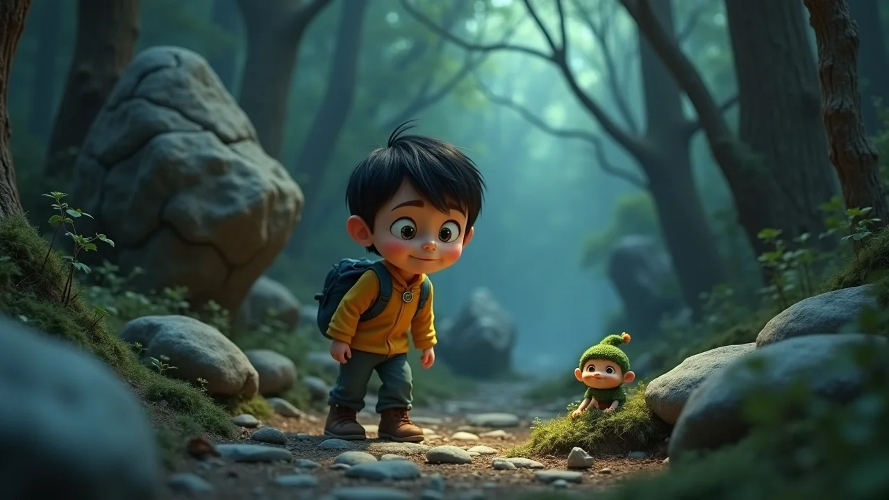 — Что случилось, Лешачок? Почему ты плачешь? — участливо спросил Сашка, вспоминая слова Выдринки о важности сопереживания. Он присел на камень рядом, держа Камень Сердечной Доброты, который слегка пульсировал, излучая мягкое тепло. Это тепло, казалось, немного успокоило Лешачка.