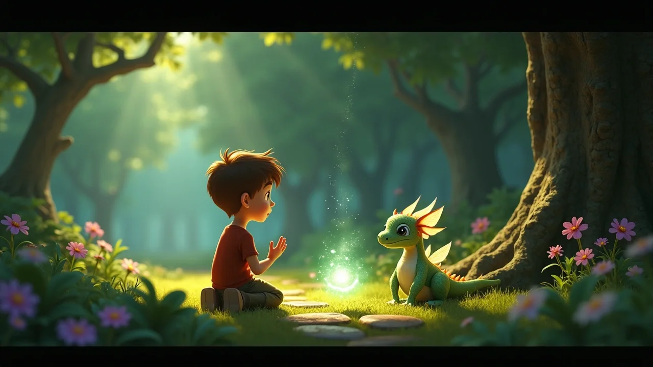В одном уютном домике, на самой опушке Шепчущего Леса, жил мальчик по имени Лукас. Ему было семь лет, и он был самым любопытным ребёнком на свете. Его глаза, словно два ярких огонька, всегда искали что-то новое, а его маленький носик постоянно что-то вынюхивал. Лукас любил задавать вопросы обо всём: почему небо голубое, откуда берутся облака, зачем деревьям листья, и даже почему у жуков так много лапок. Он замечал каждую мелочь: крошечную паутинку, блестящую каплю росы на травинке, узор на крыле бабочки – то, что другие просто не видели. Каждое новое открытие приводило его в неописуемый восторг, и он тут же бежал делиться им со своим лучшим другом – голографическим дракончиком Дебагом, которого он встретил однажды, когда случайно нажал на странную кнопку на старом геймпаде, найденном на чердаке.