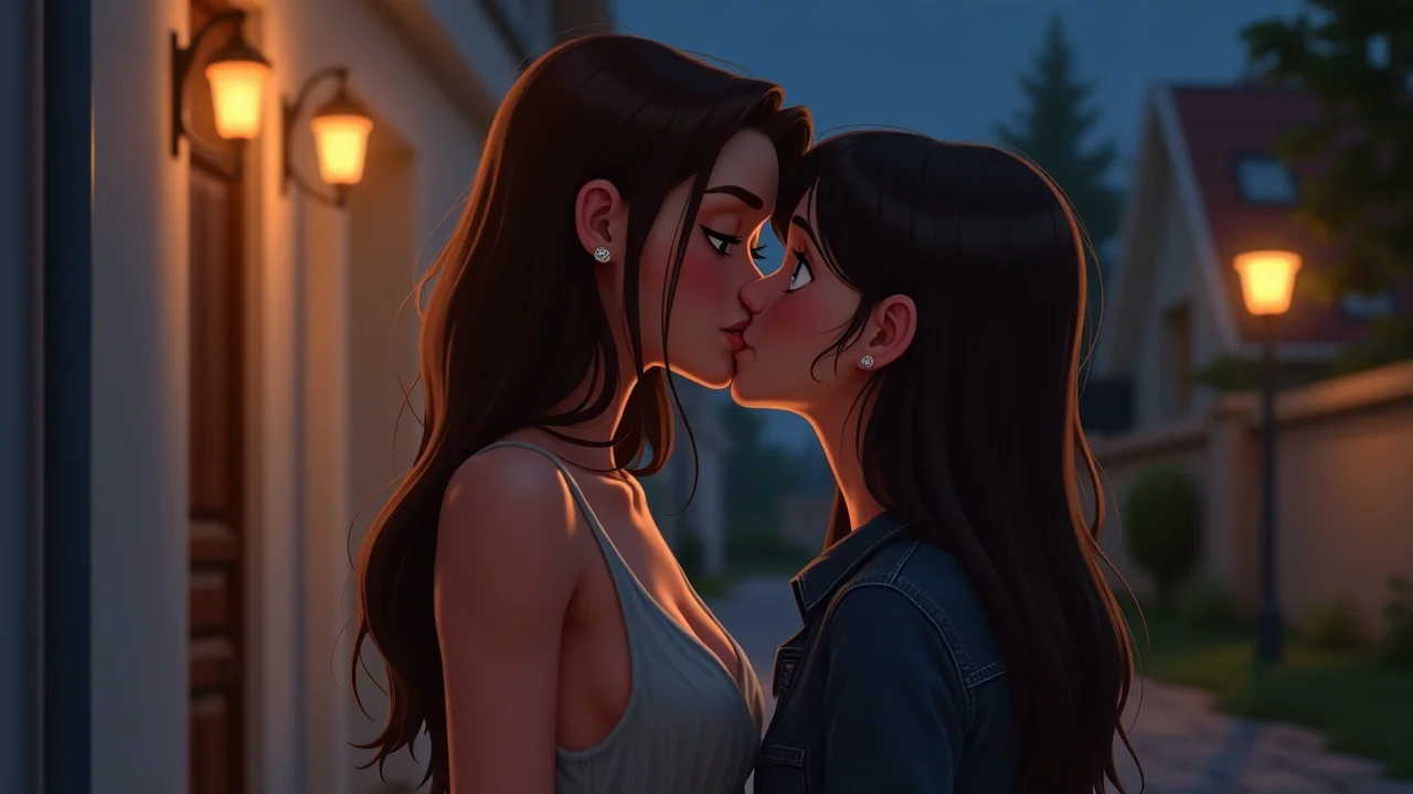 Когда они дошли до дома Натальи, она остановилась у двери. Ольга достала ключи из её сумочки и открыла дверь. Наталья повернулась к Ольге, её глаза были затуманены, но в них горел какой-то особенный огонёк. Она подняла руки, обхватила шею Ольги и, притянув её к себе, страстно поцеловала. Это был поцелуй, полный накопившихся эмоций, нежности, желания и…