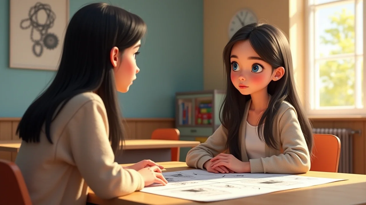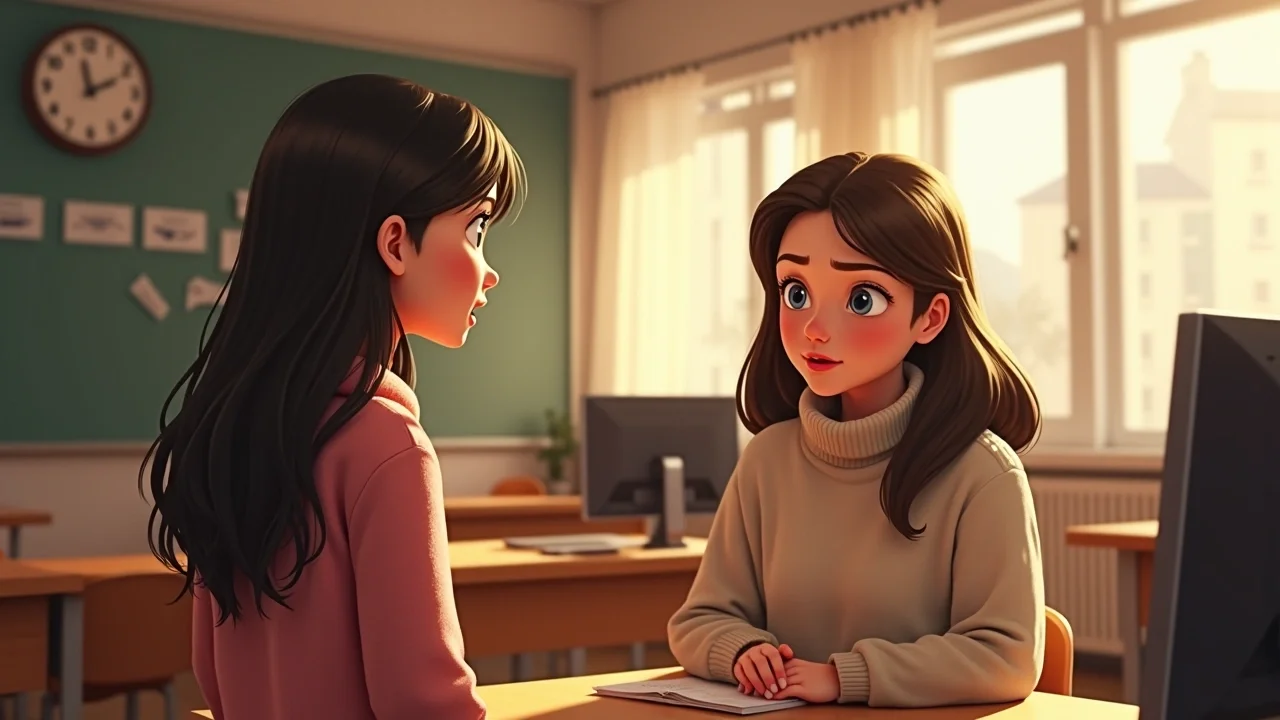 «Наталья Сергеевна…» — голос Ольги прозвучал чуть тише, чем она ожидала. Наталья обернулась, её голубые глаза удивлённо расширились. Она редко слышала, чтобы ученики обращались к ней по имени-отчеству, обычно это было просто «Наталья» или «Наталья, можно вас спросить?».
