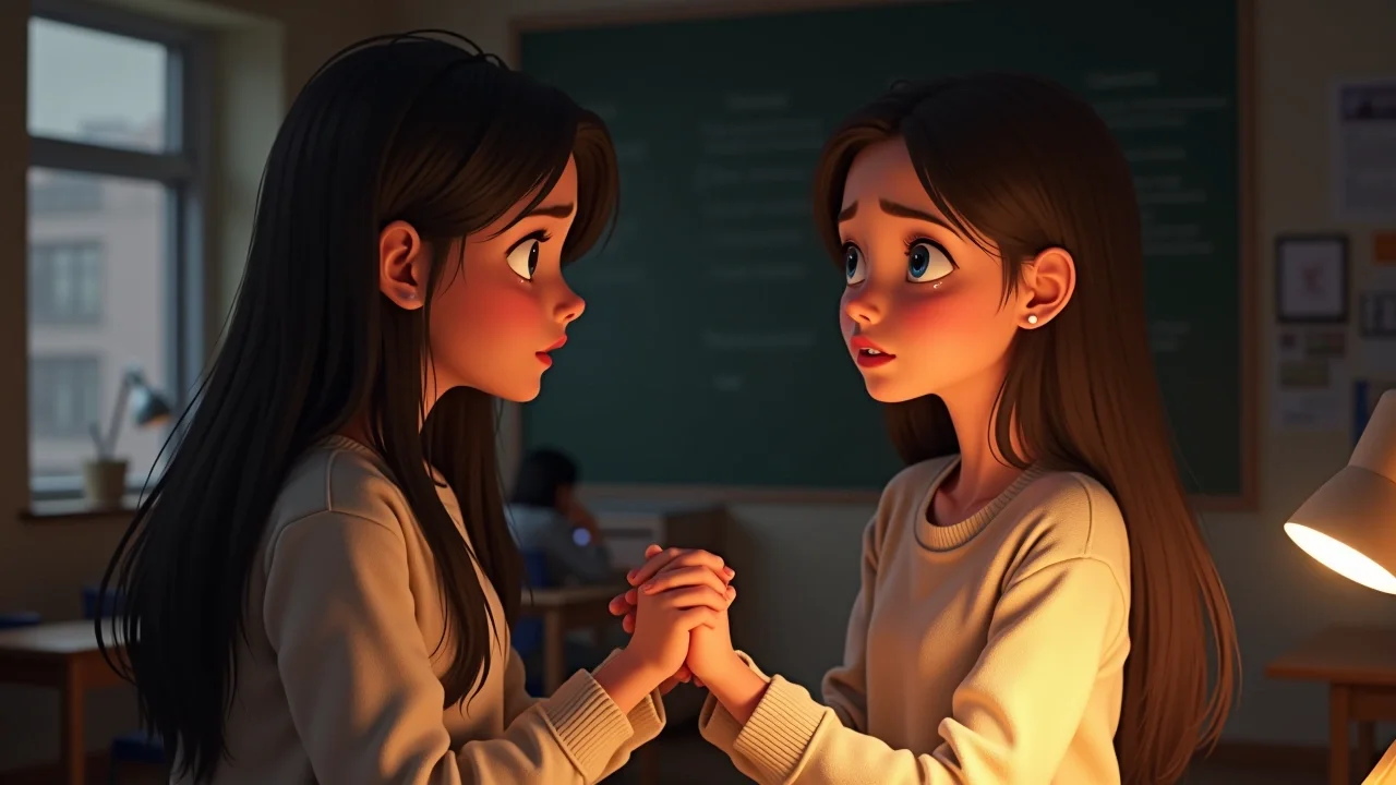 После репетиции, когда большинство учеников уже разошлись, Наталья начала собирать своё оборудование. Это был шанс. Ольга глубоко вздохнула, пытаясь унять дрожь в коленях. Она встала и медленно направилась к Наталье.