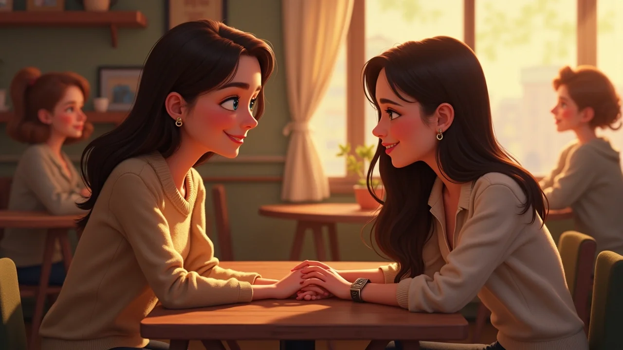 Они договорились встретиться втроём в том же кафе. Наталья чувствовала лёгкое волнение, но Ольга была спокойна и уверена. Она держала Наталью за руку под столом, и это придавало Наталье сил. Когда Анна пришла, она сразу заметила изменения в Наталье. Её глаза сияли, а улыбка была искренней и счастливой. И, конечно же, она заметила, как Ольга держит Наталью за руку.