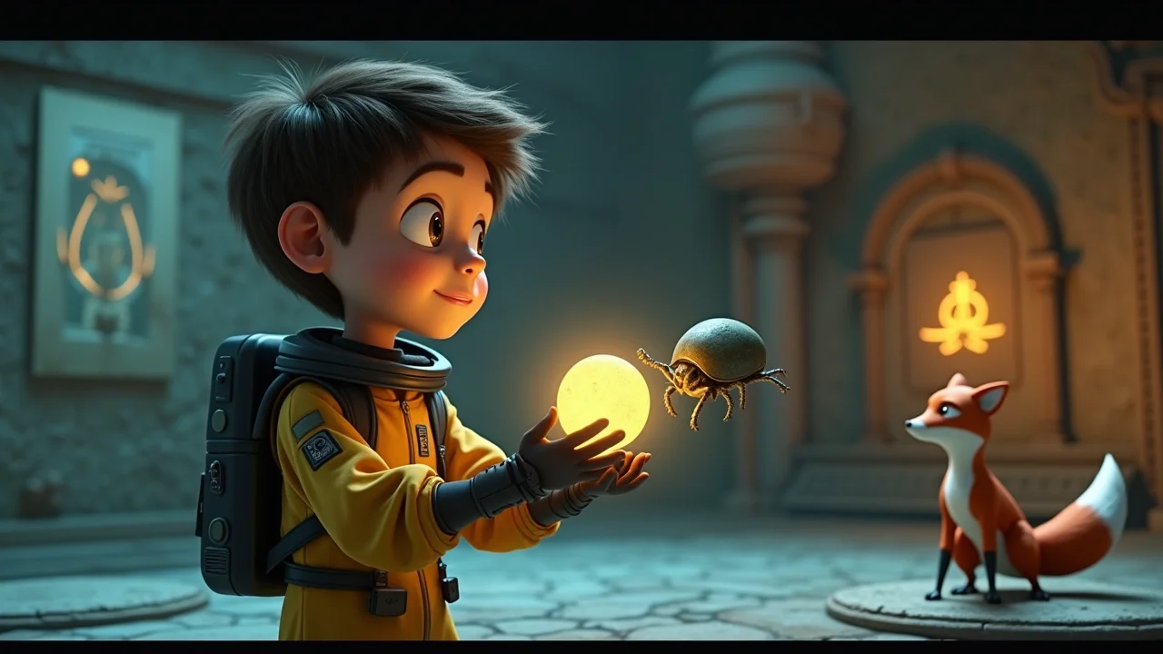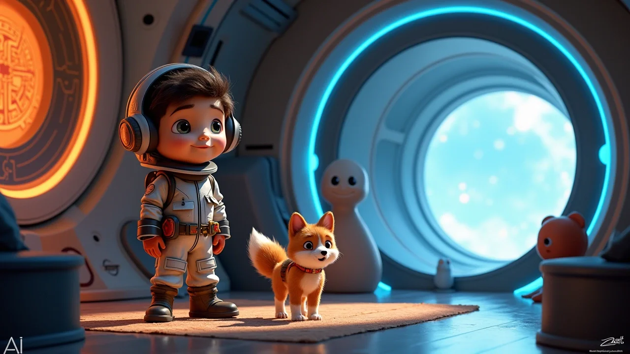 Максим с восторгом осмотрел его. Несмотря на волнение и лёгкий страх перед неизвестностью, его любопытство пересилило. «Я готов!» — твёрдо сказал он, хотя его голос немного дрожал. Спарк, механический лис, проверил все системы самоката, убедившись в его безопасности. Тоби, верный пёсик, радостно тявкнул, словно подбадривая Максима. Он даже попытался запрыгнуть на самокат, но Алекс аккуратно удержал его.