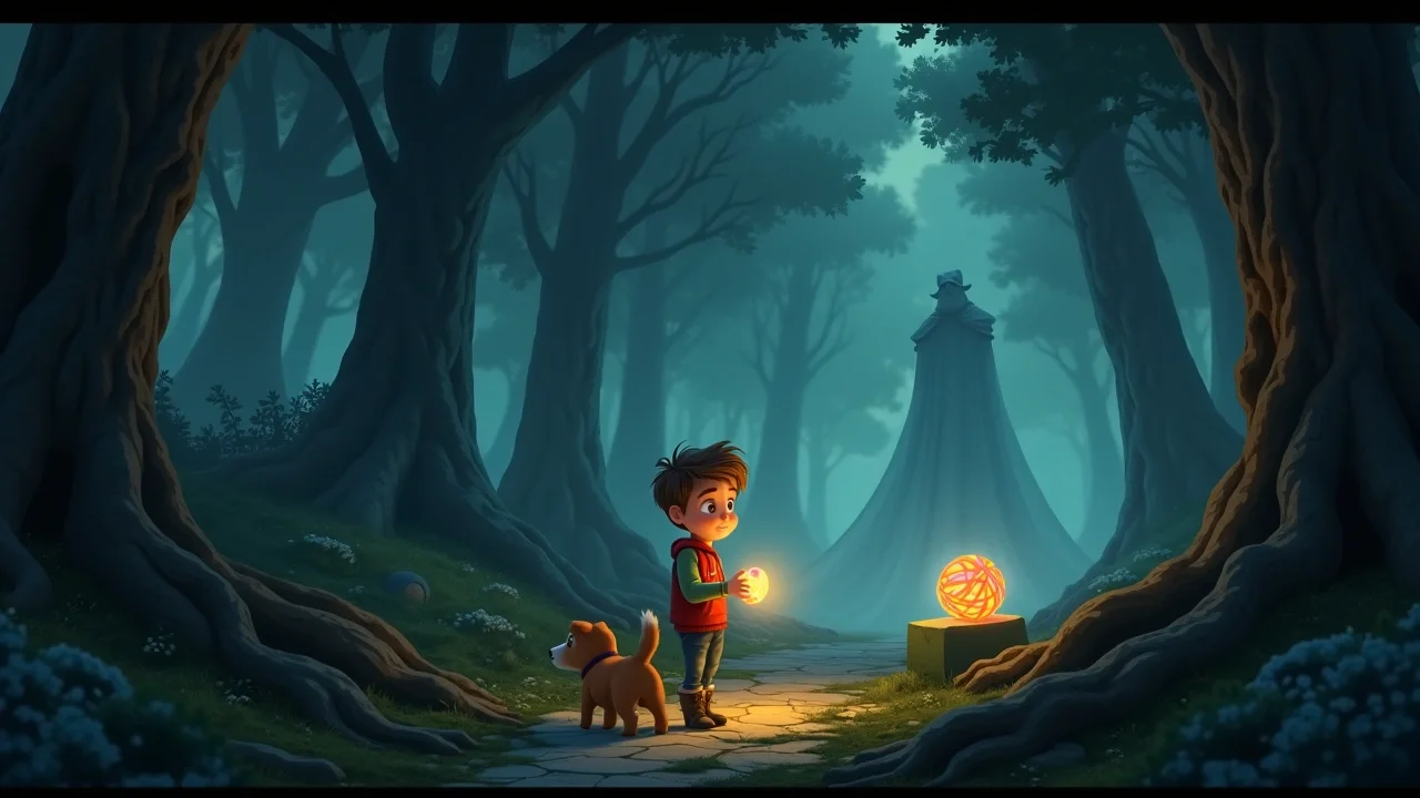Тоби, не отставая от Максима, носился по кустам, обнюхивая каждый пенёк и каждую кочку. Его рыжий хвост мелькал среди зелени, как огонёк. Вдруг пёсик остановился, принюхался и тихонько зарычал. Он смотрел в сторону, куда дедушка строго-настрого запрещал ходить – в сторону Заколдованного Леса. Максим почувствовал, как камешек в кармане его шорт слегка нагрелся. Сердце забилось быстрее. Он вспомнил вчерашний голос и его просьбу.