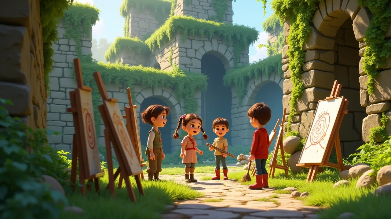 Василиса была поражена их энтузиазмом. Она рассказала им о своей любви к рисованию и созданию сказок, о том, как она видит мир в цветах и формах. Ваня и его друзья с интересом слушали. Они поделились с Василисой своими планами по восстановлению города, показали ей свои рисунки и поделки, которые они уже успели сделать.