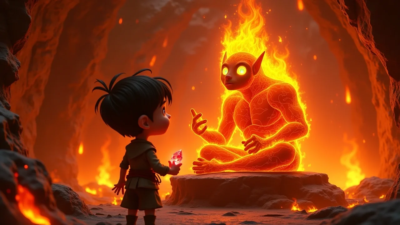 Огненный Дух внимательно посмотрел на Яромира, и его огненные глаза, казалось, проникали прямо в душу мальчика. «Многие приходили сюда, – прорычал Дух. – Многие пытались обмануть меня, чтобы получить кристалл. Но я не терплю лжи. Моё пламя сжигает всё неискреннее. Что ты можешь предложить мне, чтобы я поверил в твою правдивость?»
