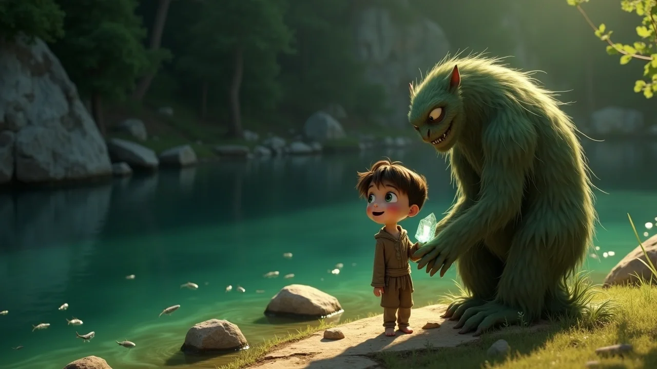 Яромир подошёл к нему, стараясь не показывать страха. Он знал, что Водяной – хранитель озера, и к нему нужно относиться с уважением. «Здравствуй, добрый Водяной, – сказал Яромир, склонив голову. – Меня зовут Яромир. Я пришёл не для того, чтобы нарушать твой покой, а чтобы просить твоей помощи. Лес болеет, и я ищу второй кристалл, чтобы спасти его. Мне сказали, что он находится в твоём озере».