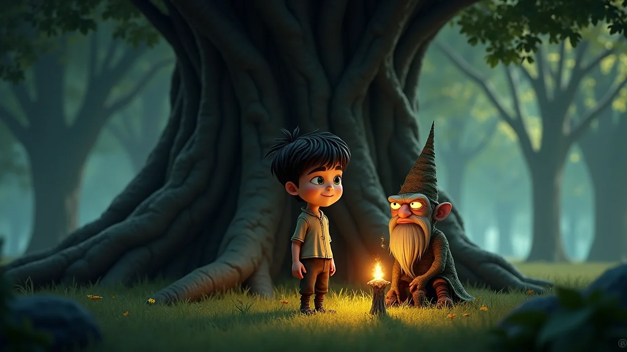 Яромир продолжил свой путь, размышляя над загадкой. Он чувствовал, что приближается к Сердцу Древа. Вскоре он вышел к огромному, древнему дубу, самому старому в лесу. Его ствол был таким широким, что Яромир едва мог обхватить его руками, а ветви уходили высоко в небо, словно пытаясь дотянуться до звёзд. У подножия дуба сидел Забытый Страж – существо, похожее на старого гнома, с длинной бородой из корней и глазами, похожими на два светящихся уголька. Он держал в руках посох, увенчанный светящимся камнем.